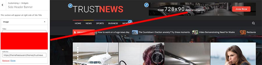 - Go to dashboard and navigate to Appearance > Widgets > Drag Image Widgets to Advertise Area Sidebar