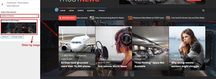 - Go to dashboard and navigate to Appearance > Customizing > Theme Options > All theme Options > Front/ Home page posts categories