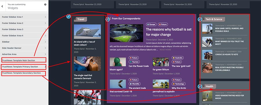 How to setup TrustNews Template Left, Main and Right Sidebar section ?