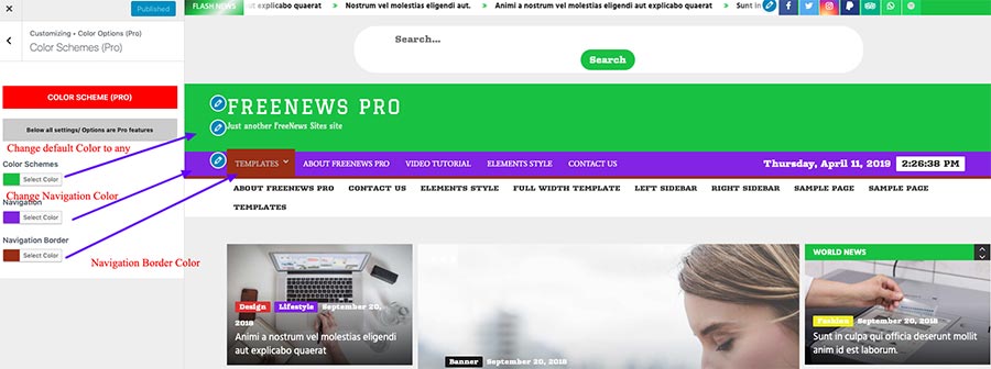 - Change Header Text Color, Background Color, Color Schemes, Social Links and Widget Text Background