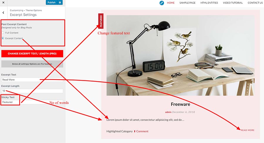 - Go to dashboard and navigate to Appearance > Customizing > Theme Options > Excerpt Settings (Pro)