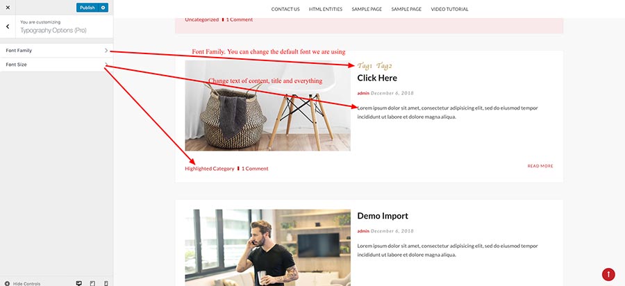 - Go to dashboard and navigate to Appearance > Customizing > Typography Options (Pro) > Font Size