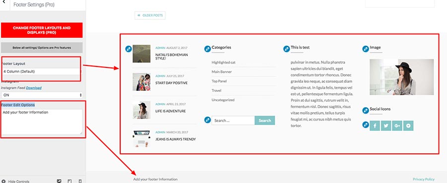 - Change footer layout according to your need. You can set footer column 1/2/3/4 from the dropdown